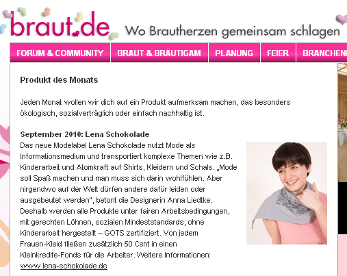 September 2010: Produkt des Monats bei braut.de